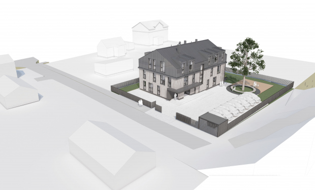 Trīsstāvu dzīvojamais nams Torņkalna vēsturiskās apbūves teritorijā projektēts, respektējot Pārdaugavas koka arhitektūras raksturu un mērogu, vienlaikus tam pievienojot laikmetīgas būves detaļas. Uzsākot projektēšanu, tika veikta padziļināta tuvāko kvartālu apbūves izpēte un insolācijas analīze.