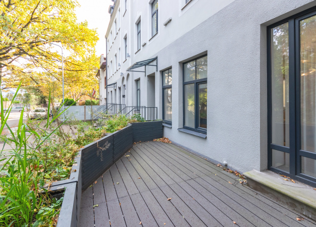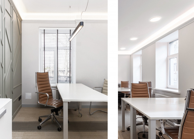 Biroja telpas tika izveidotas, apvienojot trīs dzīvokļus, 19. gs. ēkas pirmajā stāvā. Strādājot pie telpu plānojuma, būtiska nozīme bija jau esošo biroja mēbeļu un iekārtu integrācijai jaunajā mājvietā Šreienbušas namos. Dekoratīvās sienas koka līstīšu raksts ir veidots pēc mūsu izstrādātiem rasējumiem. Tas piešķir telpām raksturu un izceļ biroja identitāti. Savukārt, pret Čiekurkalna 2. līniju vērstā terase kalpo kā lieliska atpūtas vieta.