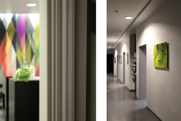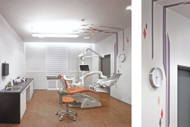 Zobārstniecības telpas atrodas jūgendstila namā Rīgas vēsturiskā centrā. Telpas pārplānojot un pielāgojot klīnikas vajadzībām ir izveidoti četri ārstniecības kabineti, kā arī paredzētas nepieciešamās palīgtelpas, kas funkcionāli saistītas ar ārstniecības procesa specifiku. Interjera noskaņā dominē neitrāli, pelēcīgi toņi, kas papildināti ar spilgtiem krāsu akcentiem reģistratūras daļā. Ārstniecības krēslā pavadīto laiku palīdz īsināt unikāli sienas un griestu dekori, kas izvietoti uz kabineta griestiem un sienām.