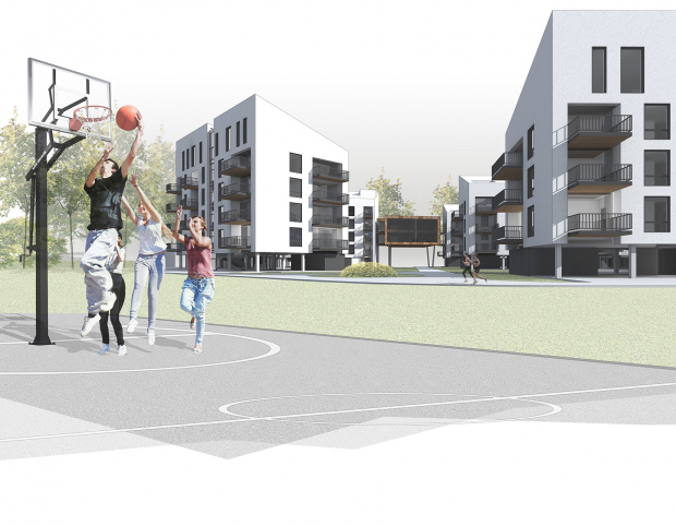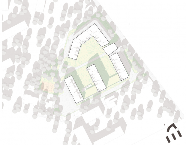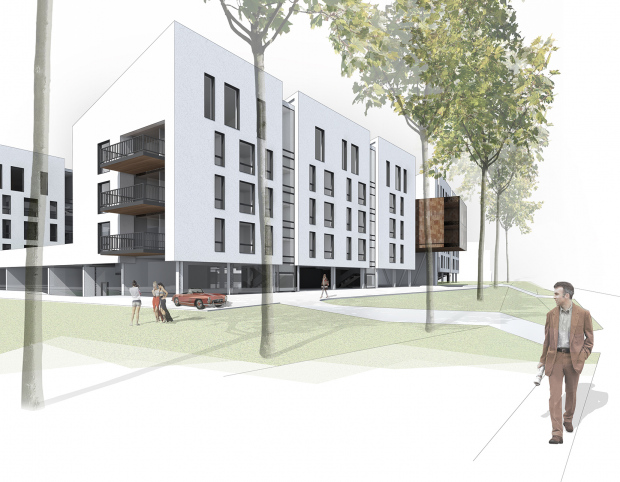 Daudzdzīvokļu dzīvojamo ēku kompleksa apbūves priekšlikums veidots kā konkursa projekts. Koncepcijas izstrādes procesā tika izvērtētas nozīmīgākās vietas kvalitātes kā no pilsētbūvnieciskā, tā arī no dabas vērtību viedokļa un integrētas aktuālākās tendences dzīvojamo ēku arhiektūrā. Tas bija pamats mūsdienīgasdzīves telpas veidošanai ar plašiem, zaļiem, iedzīvotājiem atvērtiem iekšpagalmiem, autostāvvietas paredzot pusstāvu zem zemes.